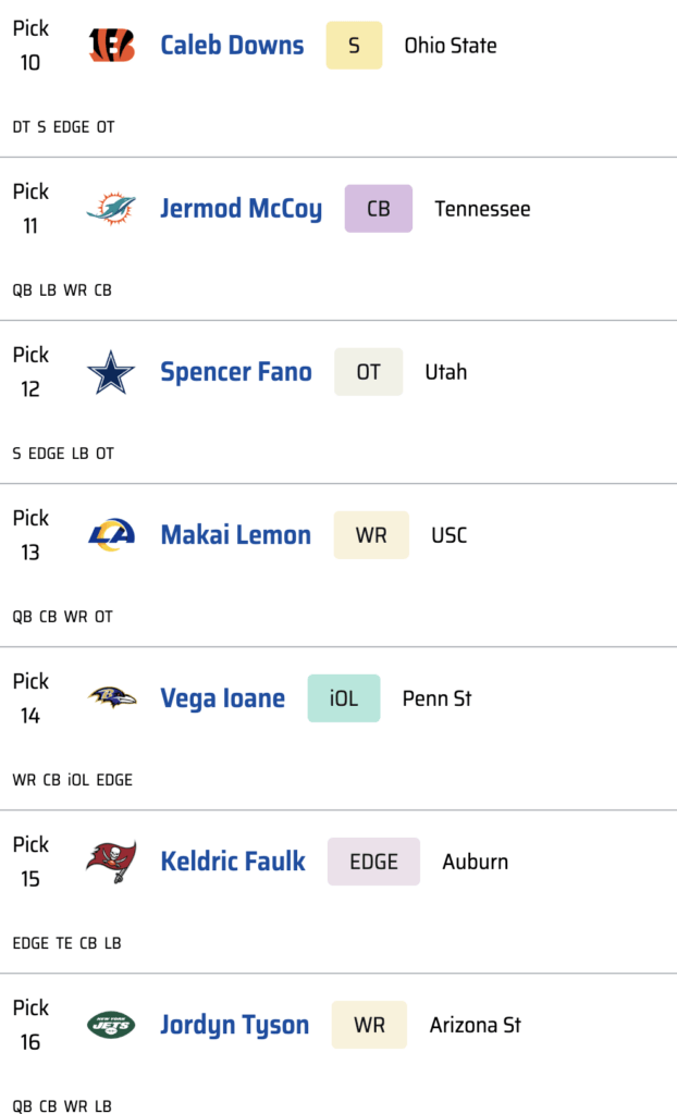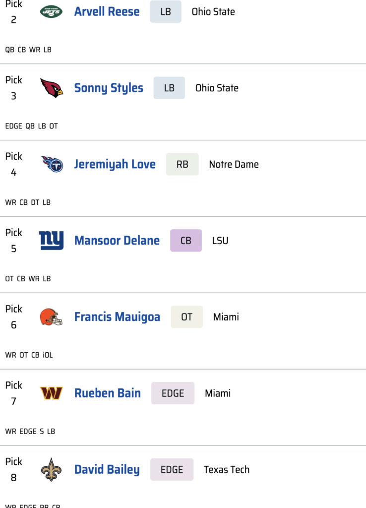 Last year’s struggles make one thing clear: the Chargers need offensive line help, particularly at guard. The problem is that Los Angeles does not pick early enough in the first round to justify the value on anyone below Penn State’s Vega Ioane, and by the time they pick again, the next tier of guards could already be off the board.